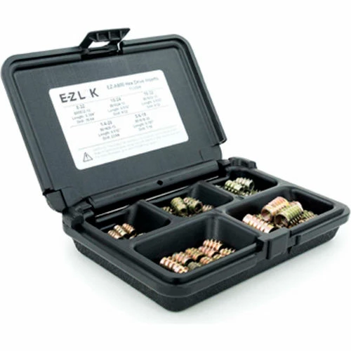 EZ Lok E-Z Hex™ Threaded Insert Assortment Kit for Soft Wood – Flush – 8-32 to 5/16-18 – EZ-A800